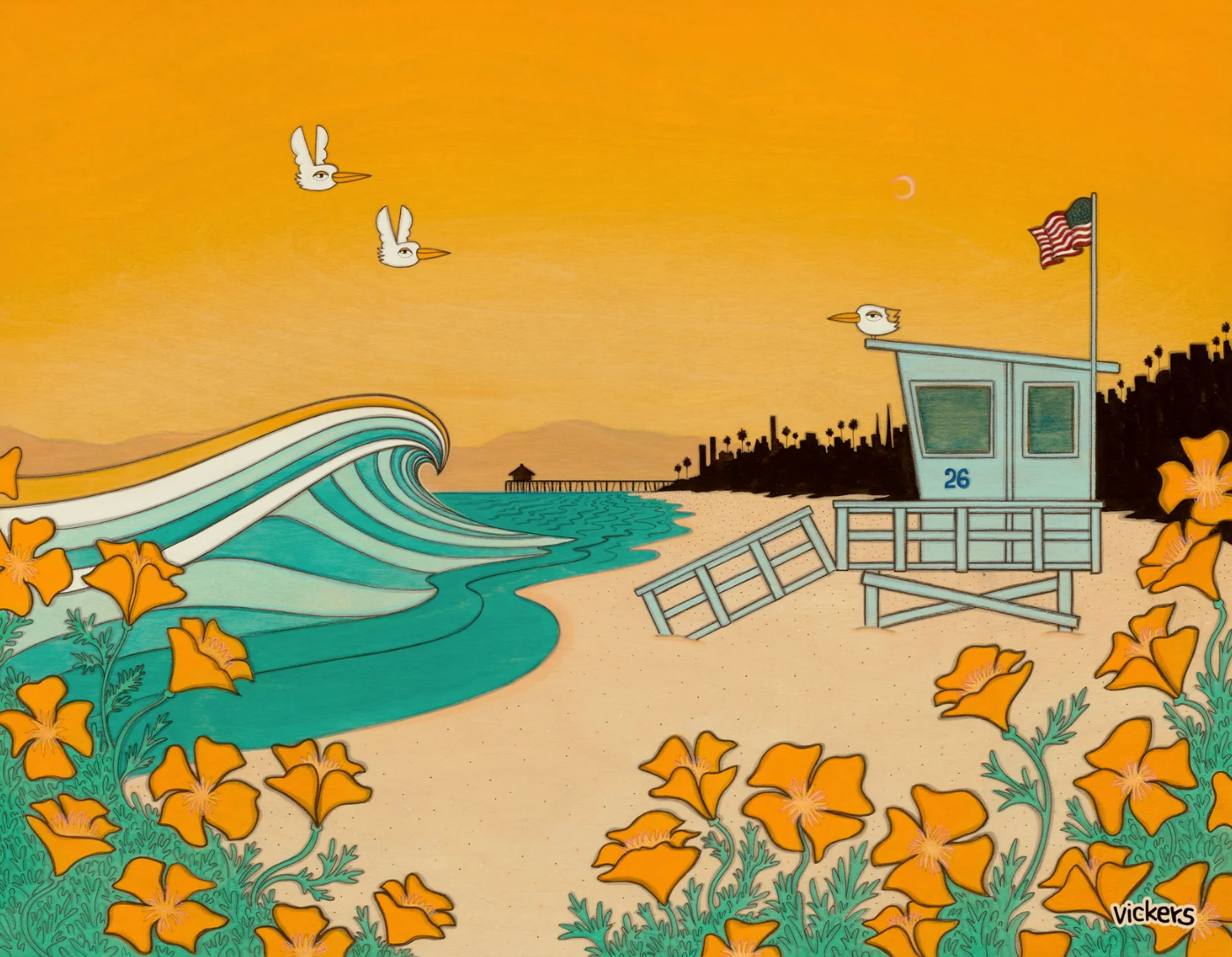Waves and Poppy Print